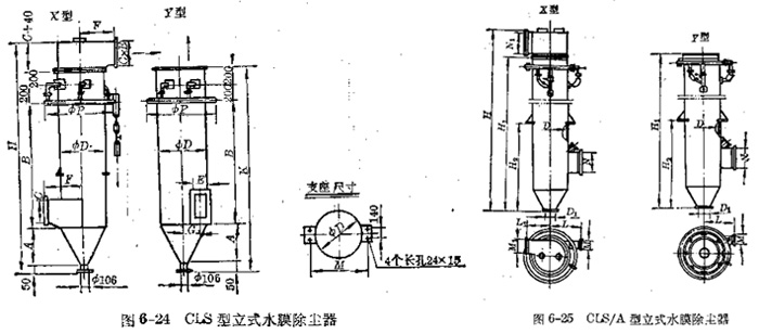 CLS型立式水膜除塵器如圖6—24,其主要性能及尺寸見表8—10和表6—ll。